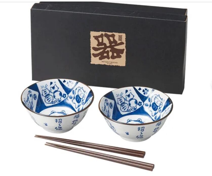 猫まるけ4.8 多用丼ペアー(箸付き)