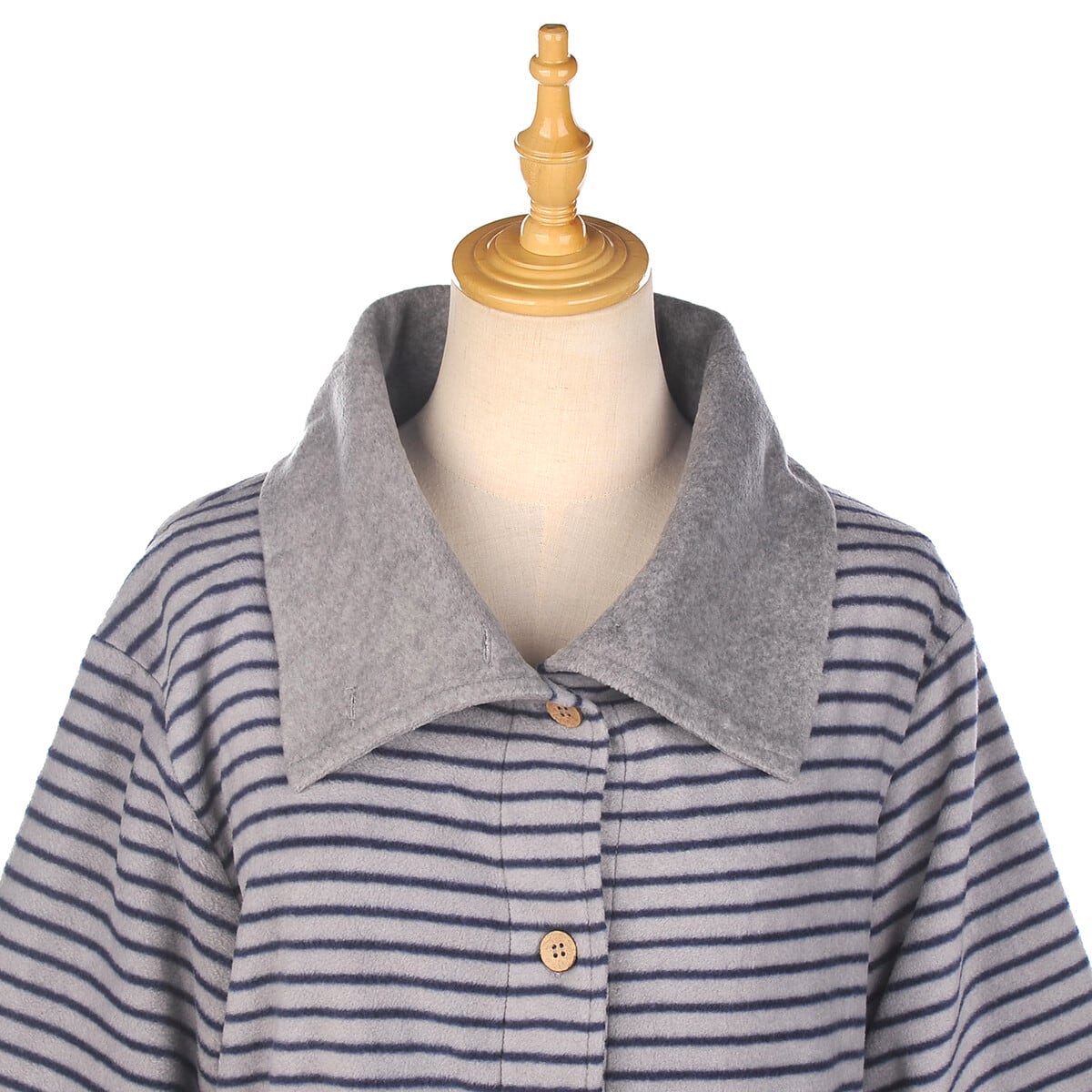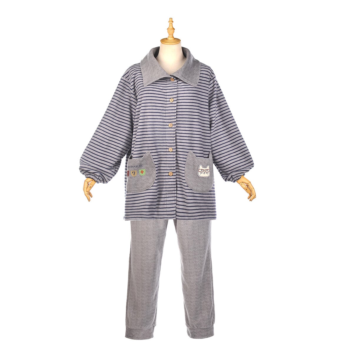 ヒップまで隠れる着丈と首元もハイネック使用になるあたたかなパジャマ。トップスは、カーディガンとしても使えます。
