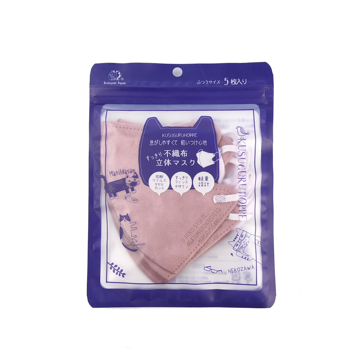 エンボス加工のワンポイント付き、立体構造で口元に空間ができるため息がしやすく、化粧も付きにくい。内側もスッキリ構造で、もしゃもしゃしにくいんです。三層構造:表面、フイルター、裏面の三層構造顔にフィットする曲線で隙間が少ない同色同柄5枚入り