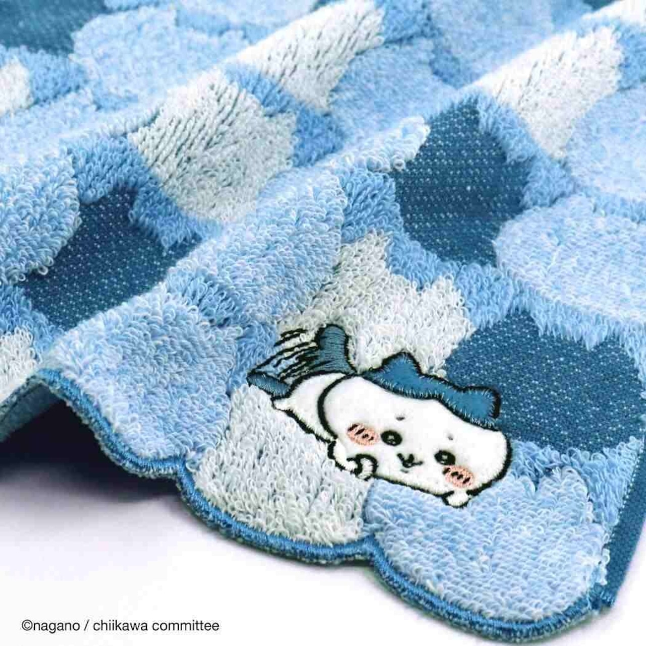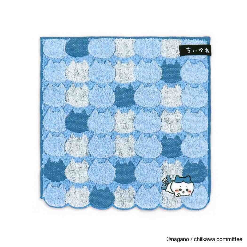 【ハンドタオル】ちいかわ フルフィーコットン タオルハンカチ おかお ブルー ハチワレ