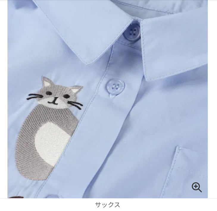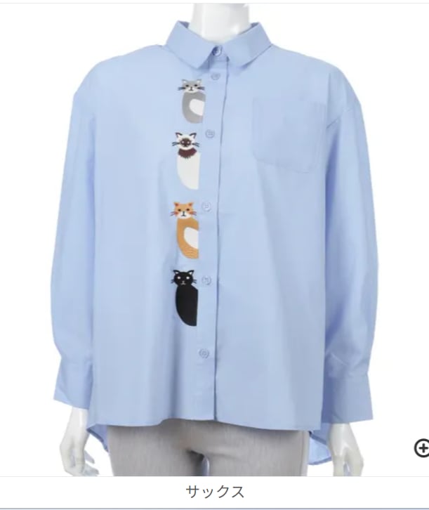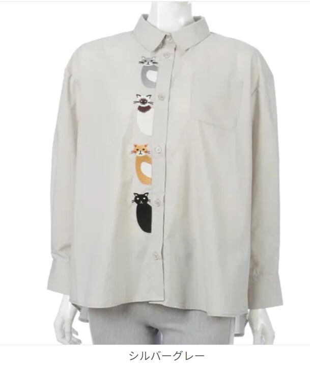 シンプルなシャツに、猫モチーフの縦ラインデザインが映える1枚。
