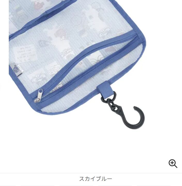 ポールなどに掛けて使えるアメニティポーチ。
