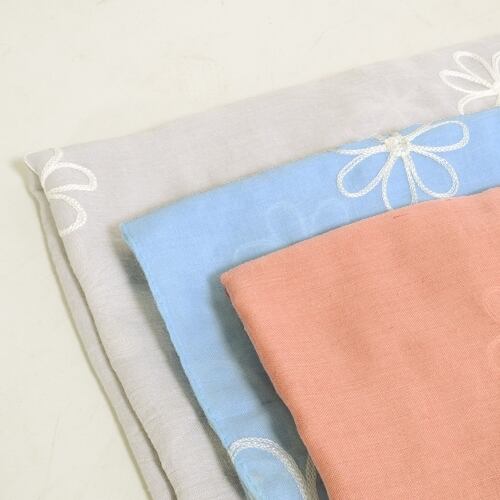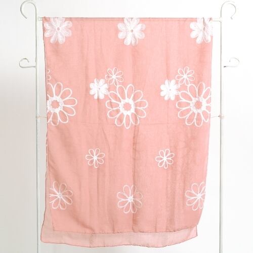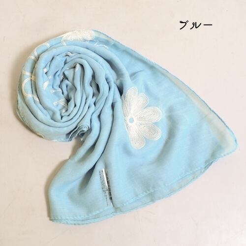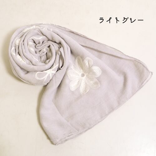 色々な大きさ、形のお花の刺繍のストールです。春色のコーデにぴったりの一枚。