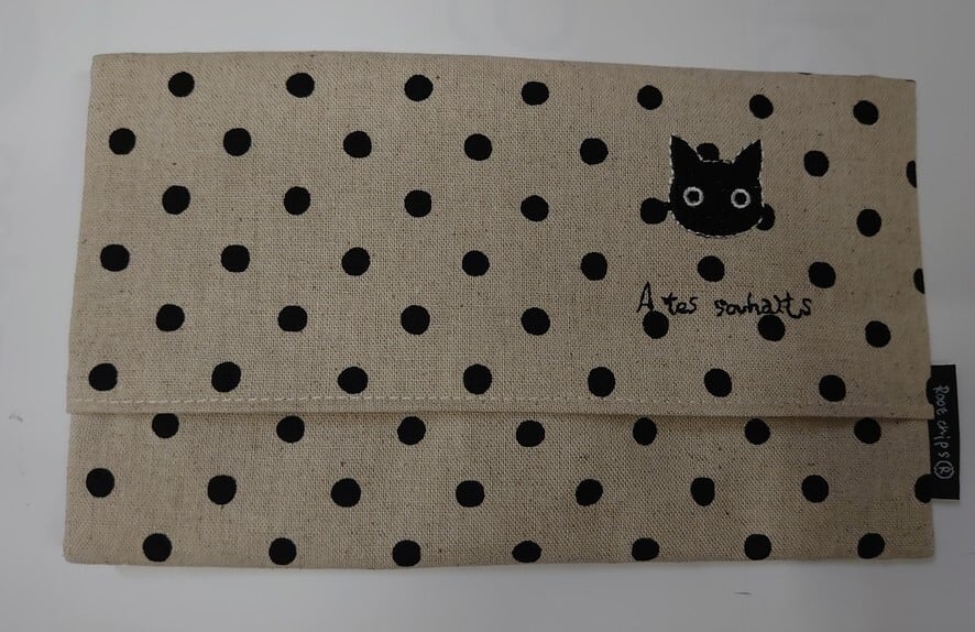 塩ビシート入りです 裏表で、使いかけとストックの仕分けができます。 猫の図柄はすべて刺繍です。サイズ・容量 本体サイズ 11.5x19.5cm