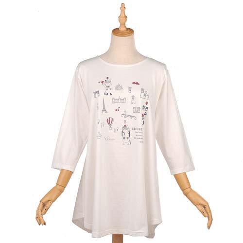 Aラインの可愛い猫のTシャツ。吸湿性のある綿素材生地を使用し、夏も快適に着て頂けます。