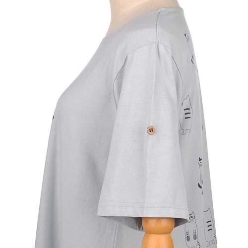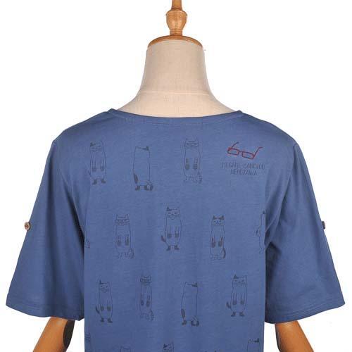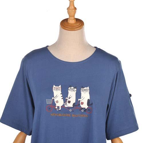 AラインTシャツ ネコまるけちゃりんこスカイブルー