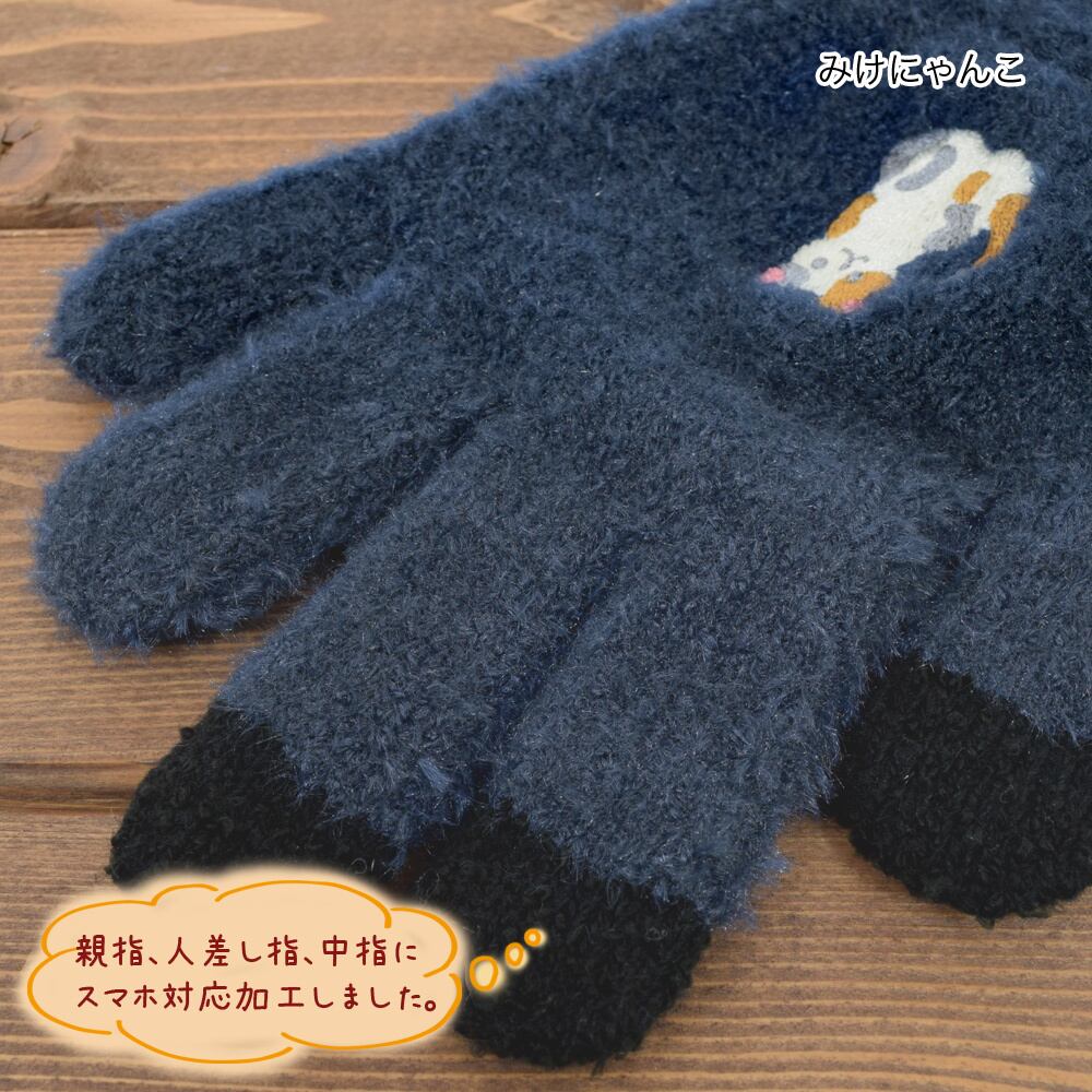親指、人差し指、中指にスマホ対応加工が施されていて、着けたままスマートフォンが操作可能な手袋です。