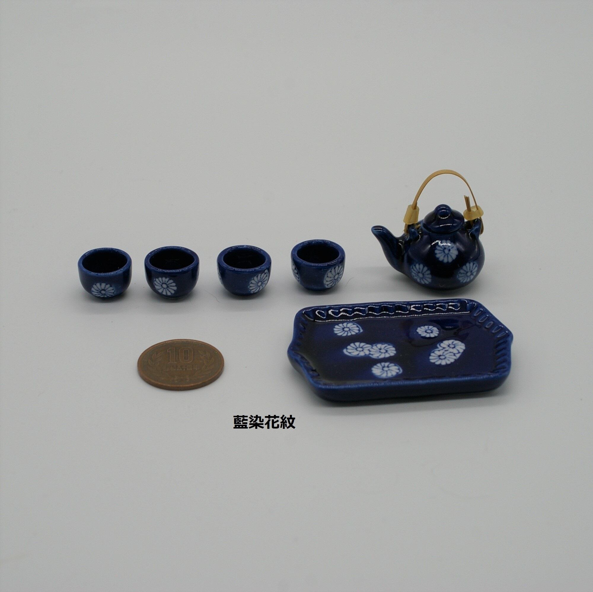 和風のミニ茶器セットです。角盆、茶碗4ヶ、急須のセット。ドールハウスに飾ったりちょっとしたスペースにも置いて楽しめます。
