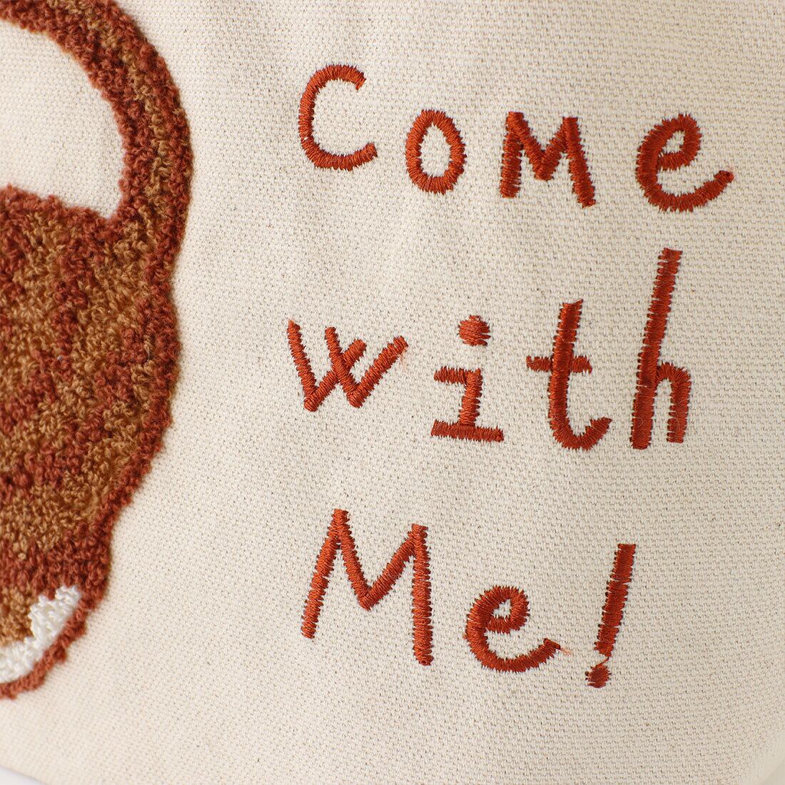 ユニークな表情のネコがタフティング刺繍されたトートバッグです。