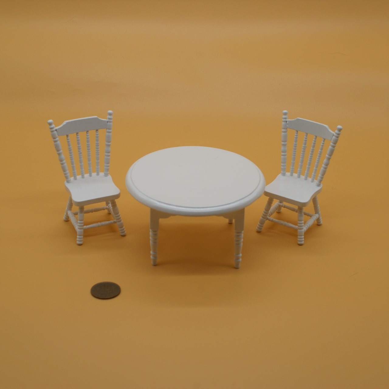 ミニチュアの丸テーブルと椅子2脚のセットです。