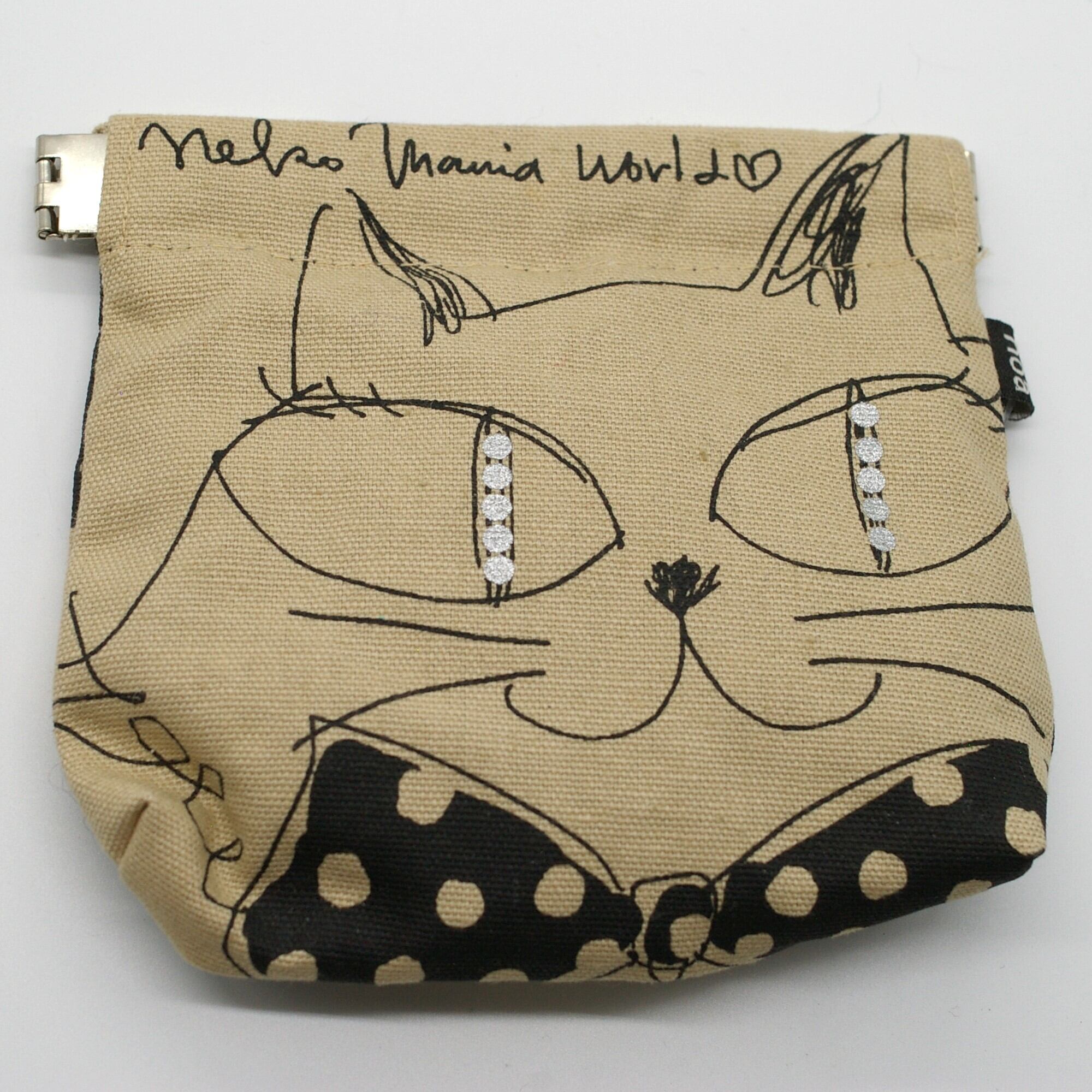 かわいい猫のパックンポーチです。 薄めのキャンバスと綿を使っています。