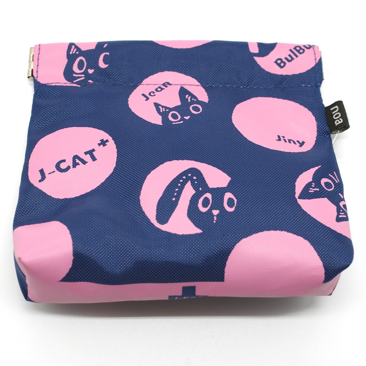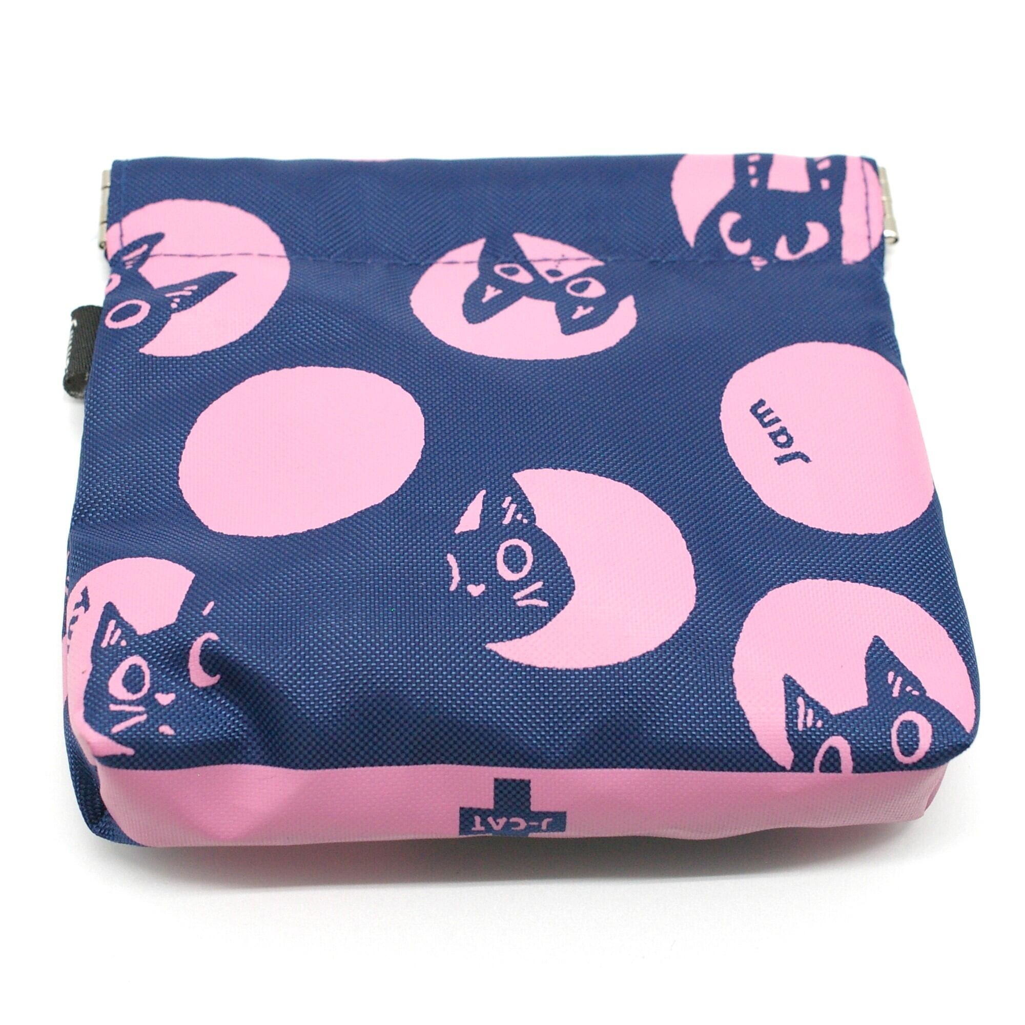 猫のパックンポーチ 紺ベース 桃ラウンド
