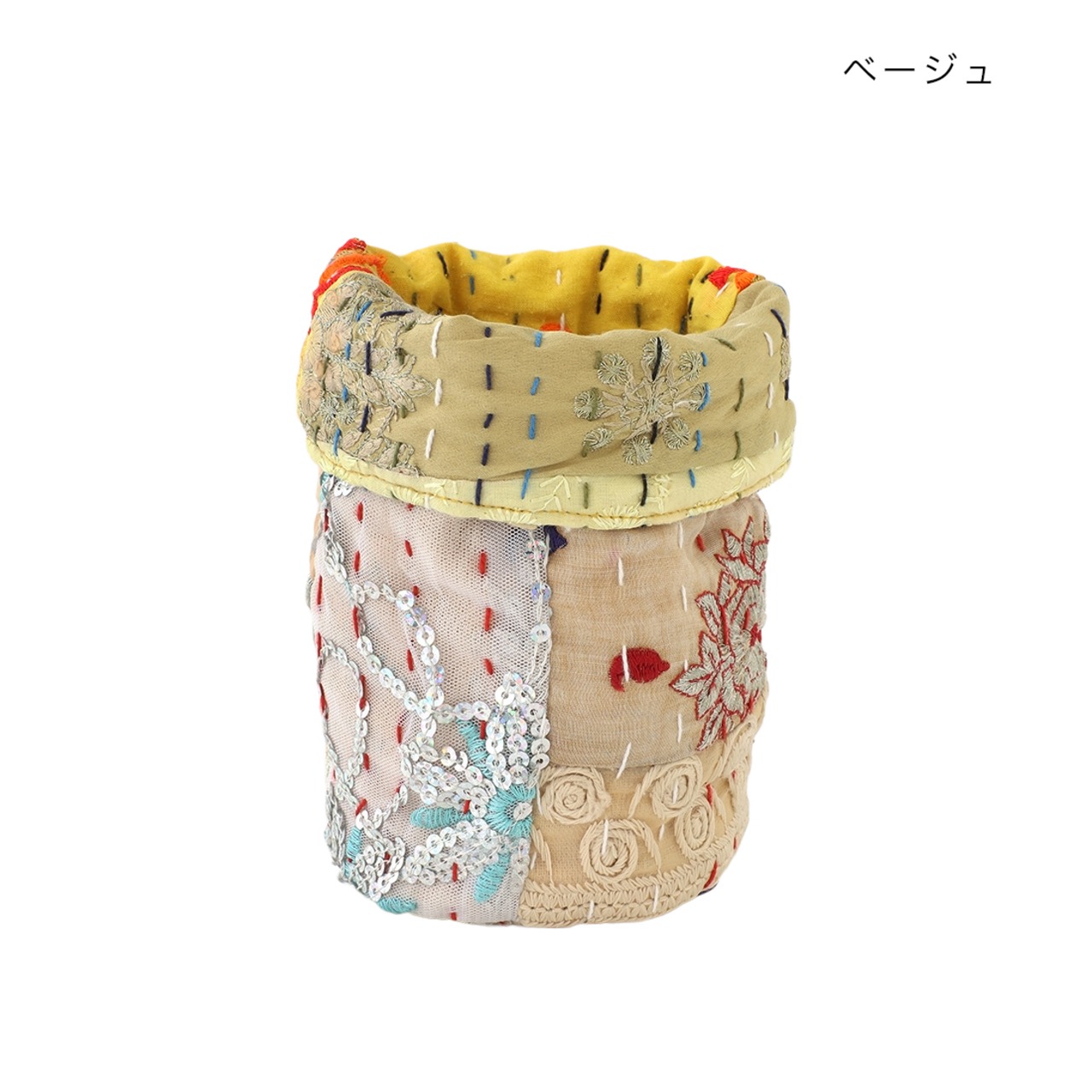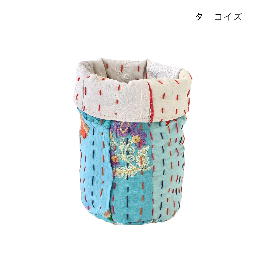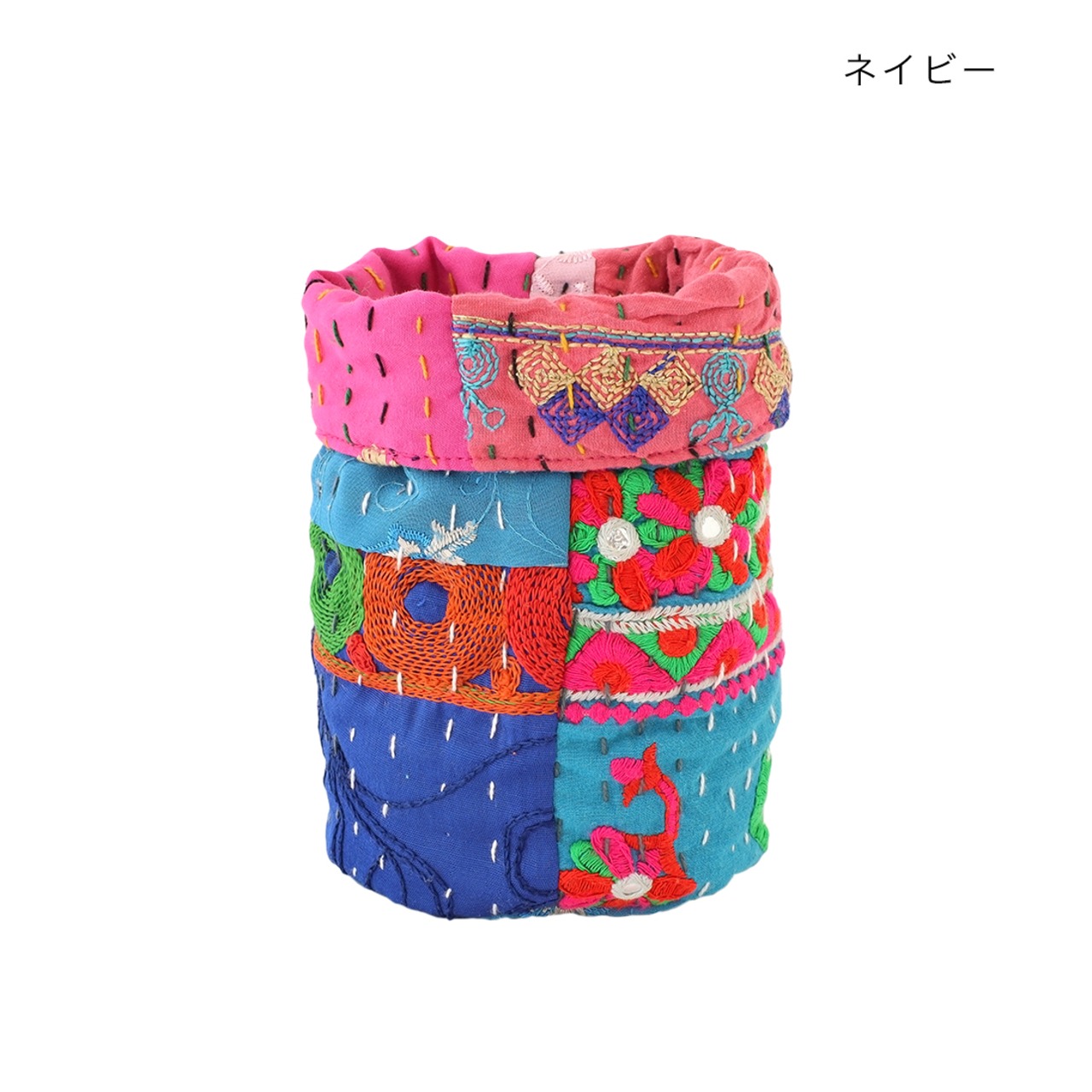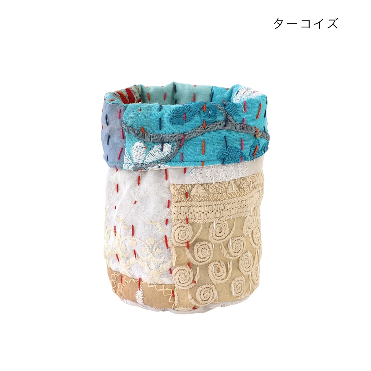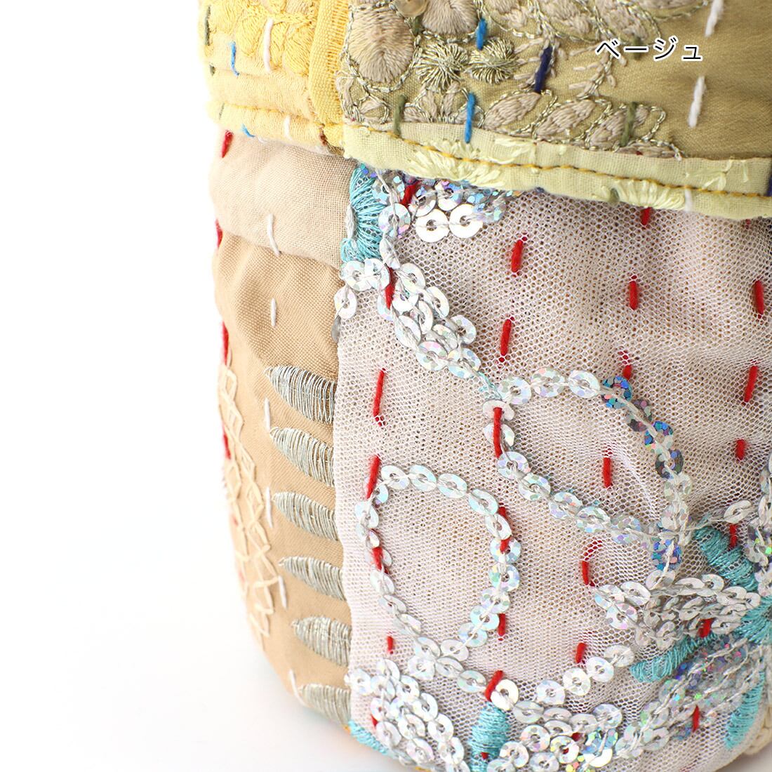 サリーなどの古布をパッチワークした生地にラリーステッチ(刺し子)を施したアイテムです。カラフルなパッチワークで毎日が楽しくなります。
