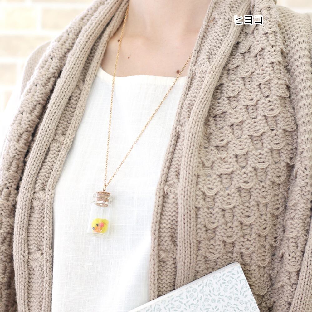 小さなボトルにフェルトモチーフを入れたユニークなネックレスです。遊び心のあるデザインで話題になっちゃうかも!?