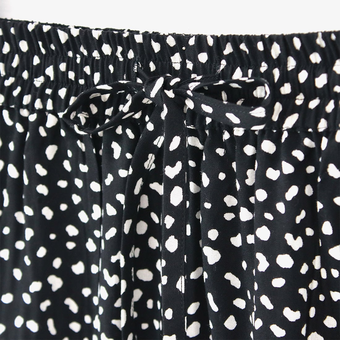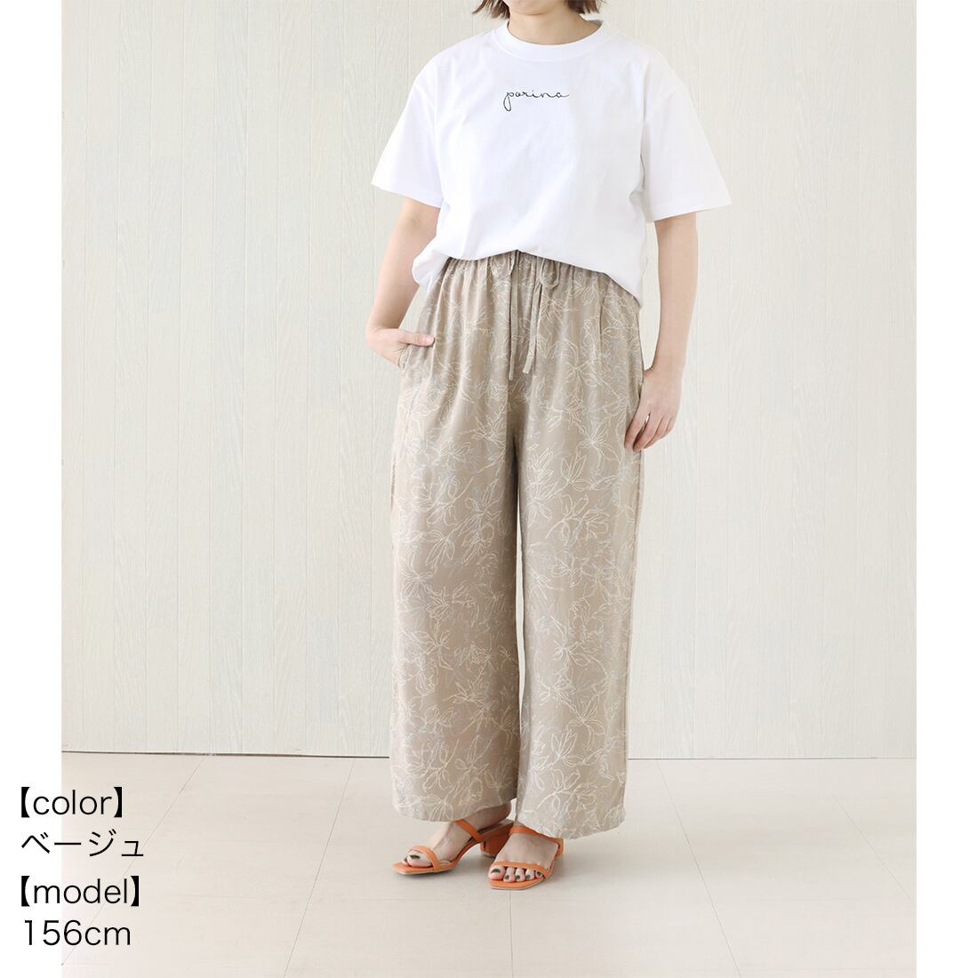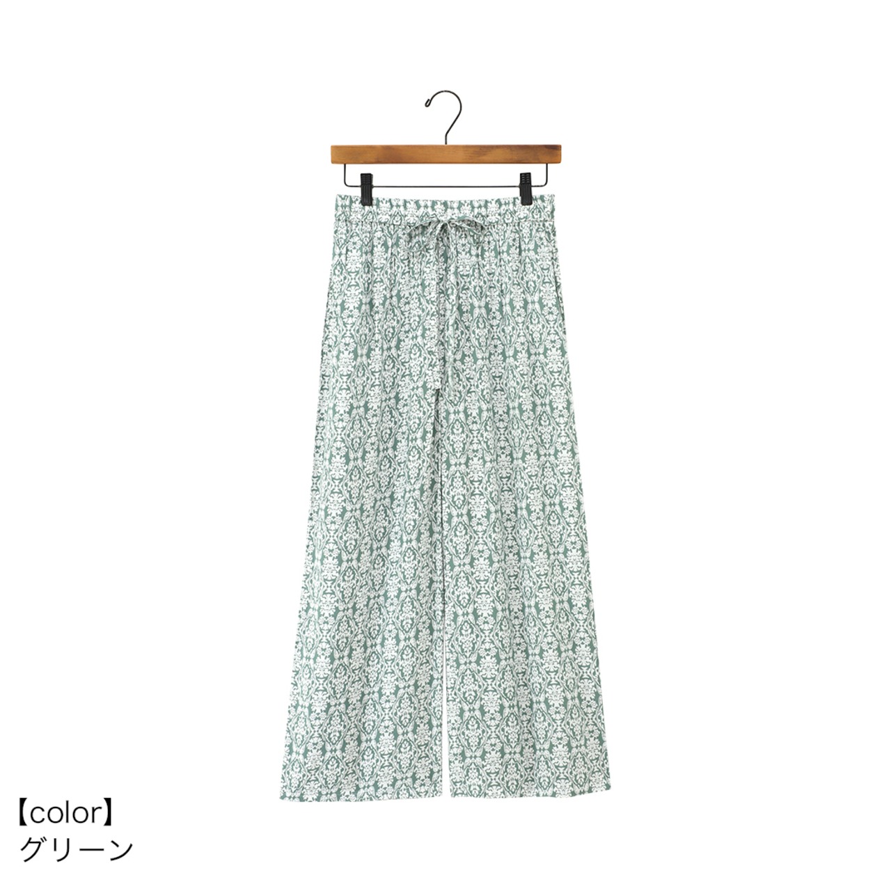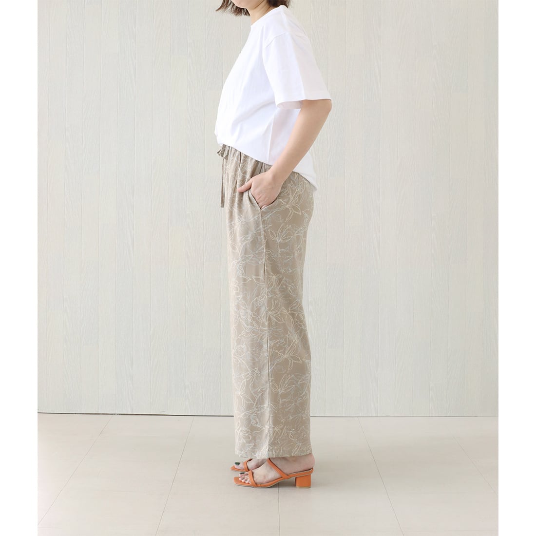 Tシャツやブラウス、ワンピースにも合わせやすい総柄のパンツです。