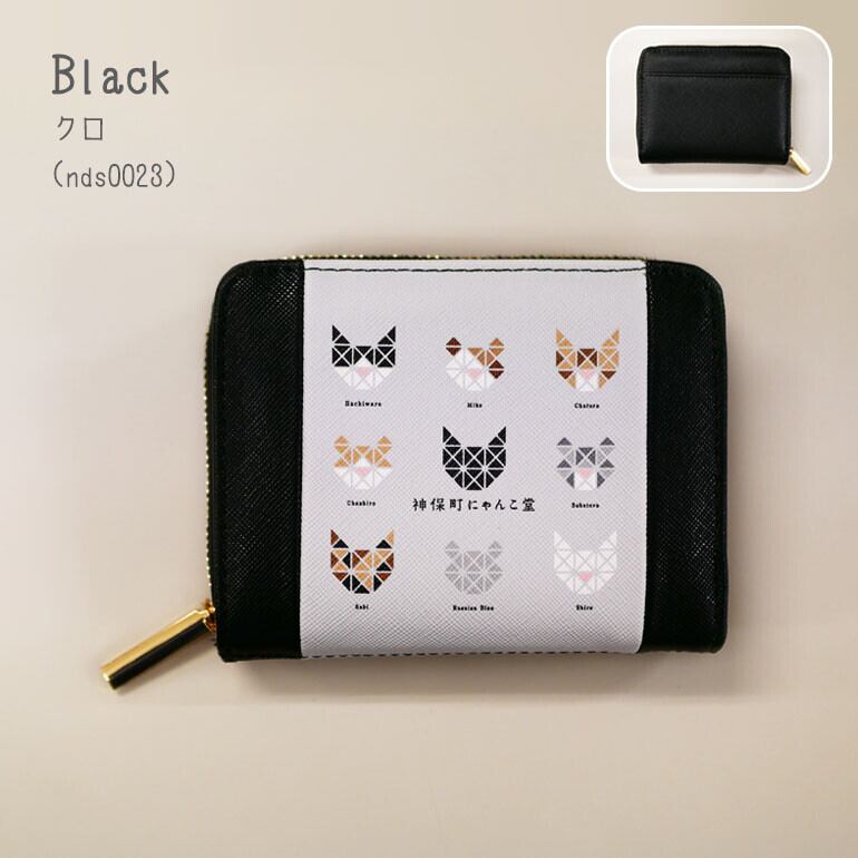 ねこ好きが集まる本屋「神保町にゃんこ堂」の猫財布。カードポケットが5つ、フリーポケットが2つの収納力。大きく開くラウンドファスナーの小銭入れは仕切り付き。