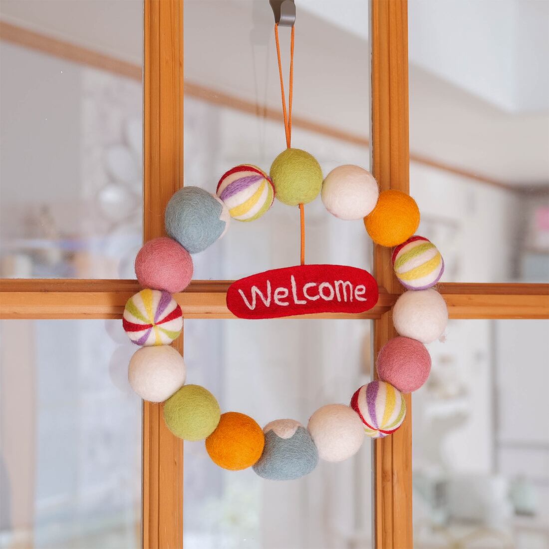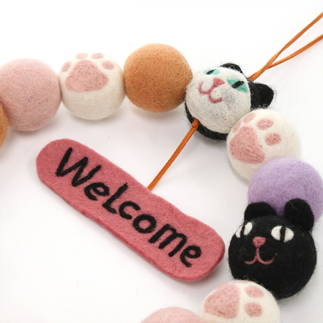 フェルトで玄関やお部屋に飾れるリースを作りました。フェルトで作られたどうぶつたちの顔はどこかのほほんとした仕上がりになっています。